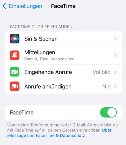 So deaktivieren Sie FaceTime: Einstellungen > FaceTime, um es zu deaktivieren. Warten Sie einige Minuten und schalten Sie iMessage und FaceTime ein, um iMessage erneut zu aktivieren.