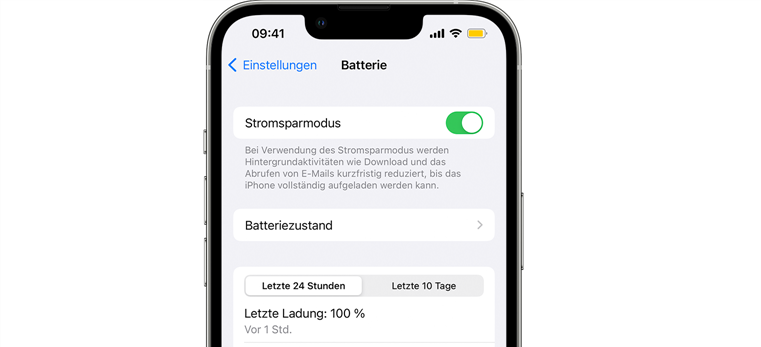 Um den Status zu überprüfen, navigieren Sie zu Einstellungen > Akku > Stromsparmodus deaktivieren, falls dieser aktiviert ist.
