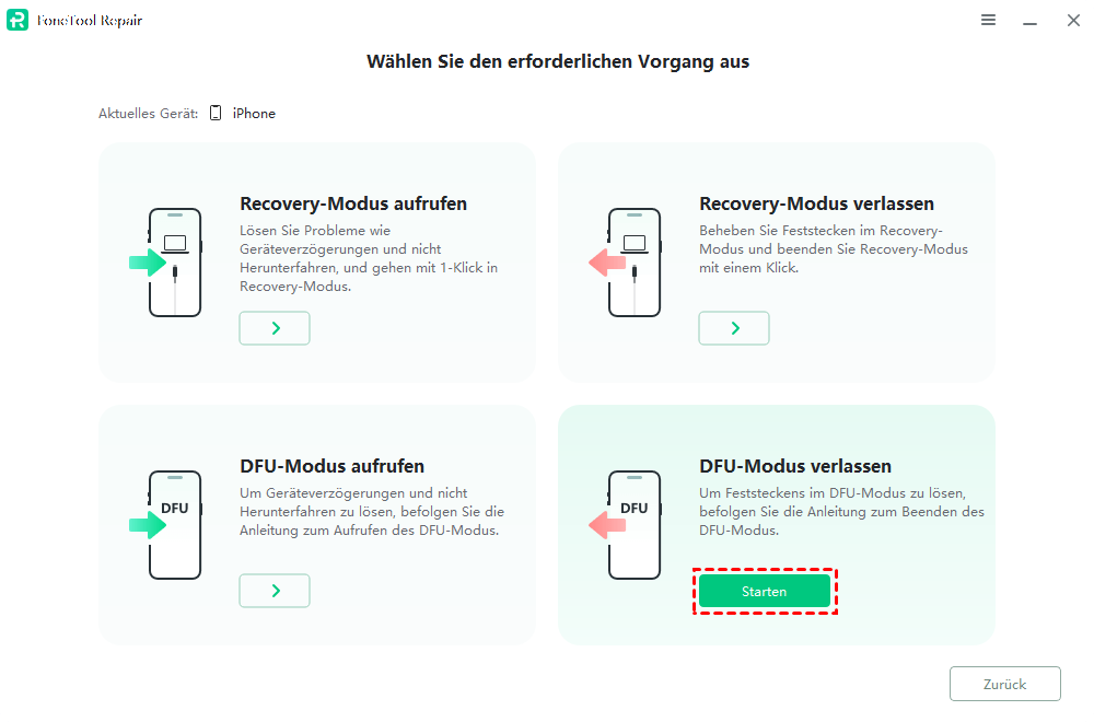 Methode 4. iPhone mit FoneTool Repair aus dem DFU-Modus befreien (ohne Datenverlust)