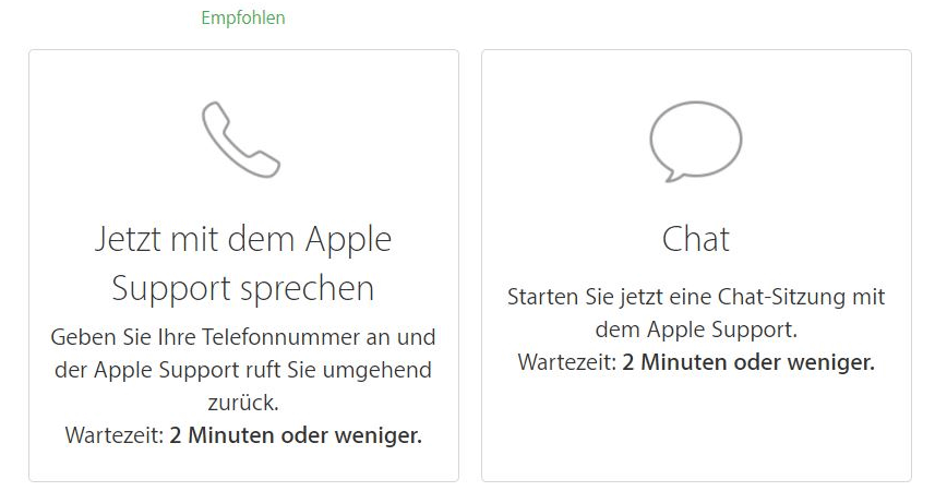 - Sie können zur Apple-Supportseite https://support.apple.com/ gehen, um den Apple-Support zu kontaktieren.