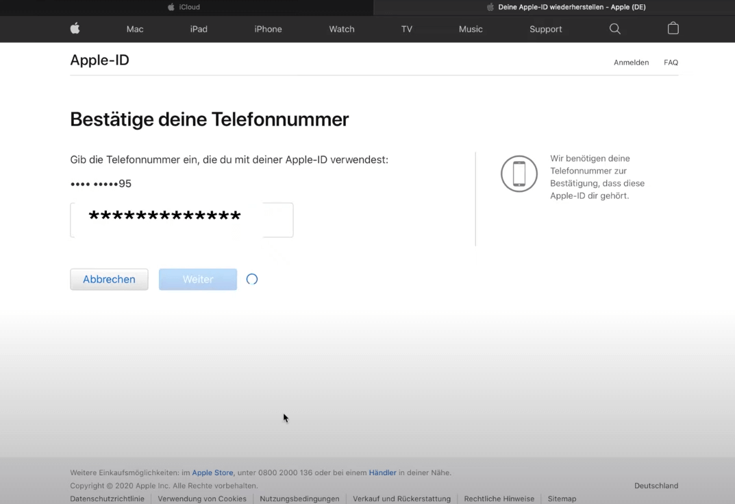 4. Geben Sie die Telefonnummer ein, die Sie zum Erstellen der Apple-ID verwendet haben.