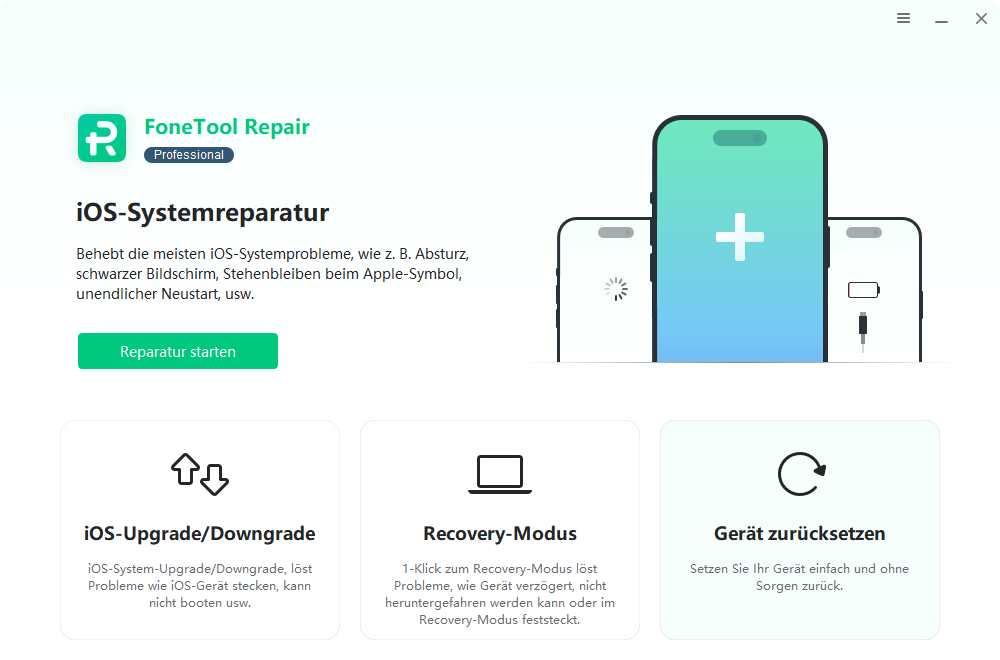 Da iTunes aufgrund von Systemeinschränkungen häufig zu unerwarteten Fehlern führt und die Benutzeroberfläche für viele unübersichtlich ist, empfehlen wir die Nutzung von FoneTool Repair. Mit seinen leistungsstarken Upgrade- und Downgrade-Funktionen können Sie Ihr iPad-System in nur wenigen Schritten aktualisieren – oder bei Bedarf sogar auf eine ältere Version zurücksetzen.