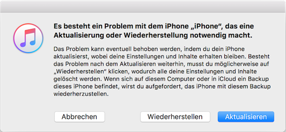 Wenn Sie Aktualisieren auswählen, wird das Gerät auf die neueste Version aktualisiert und Ihre Daten bleiben erhalten, aber die Erfolgsrate ist gering, und wenn Sie auf Wiederherstellen klicken, ist die Erfolgsrate höher, aber Ihre Daten werden gelöscht.