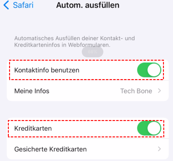 Deaktivieren Sie die Option „Autom. ausfüllen“: Die Option „Autom. ausfüllen“ in Safari kann sich auch auf die App-Funktion auswirken. Sie können „Einstellungen“ starten > auf „Safari“ klicken > „Autom. ausfüllen“ im Abschnitt „Allgemein“ auswählen > Die beiden Optionen auf dem Bildschirm deaktivieren.