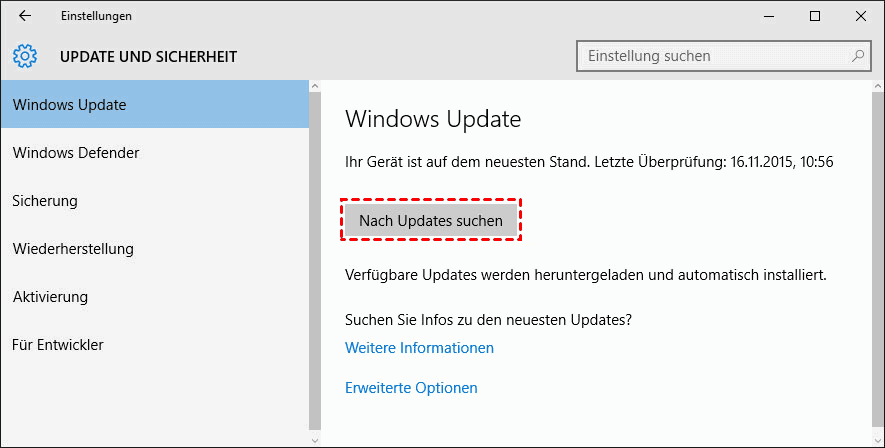 Schritt 2. Klicken Sie auf Nach Updates suchen.