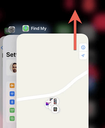 • Beenden und erneutes Öffnen der „Wo ist?“-App: Wischen Sie vom unteren Rand nach oben und halten Sie in der Mitte Ihres Bildschirms inne, um den App-Umschalter zu öffnen > Wischen Sie in der „Wo ist?“-App nach oben, um sie zu schließen.