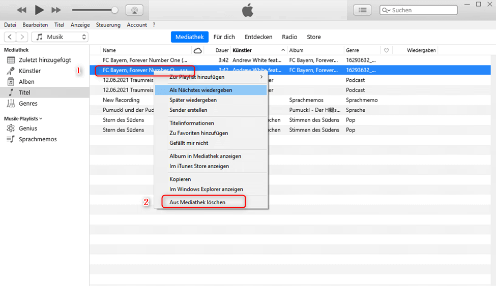 Entfernen Sie unerwünschte Titel aus der iTunes-Mediathek