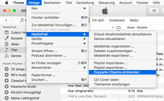 iTunes leistet auch hervorragende Arbeit beim Auflisten der doppelten Musik in Ihrer Bibliothek. Sie können sich darauf verlassen, dass es problemlos doppelte Musik vom iPhone löscht und so begrenzten iPhone-Speicherplatz freigibt. Führen Sie die folgenden Schritte aus, um Musik auf dem iPhone zu duplizieren.