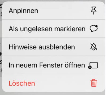 Suchen Sie die Unterhaltung, die Sie als ungelesen markieren möchten. Tippen Sie auf den Chat und halten Sie ihn gedrückt, bis ein Nachrichtenvorschaufenster angezeigt wird. Wählen Sie dann „Als ungelesen markieren“ aus der Liste der Schnellaktionen in der unteren linken Ecke des Bildschirms.