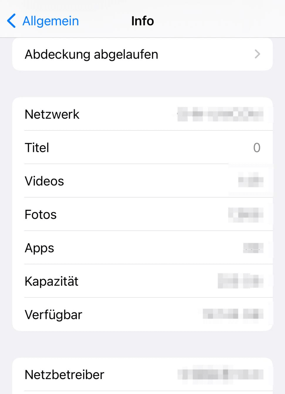 Wenn Ihr iPhone anbietergebunden ist, können Sie keine andere SIM-Karte eines anderen Anbieters verwenden. Dies geschieht normalerweise, wenn Sie Ihr iPhone bei einem Mobilfunkanbieter gekauft haben. Gehen Sie zu: „Einstellungen“ > „Allgemein“ > „Info“ und suchen nach „Netzwerkanbieter“ suchen, um den Status der Netzbetreibersperre anzuzeigen.