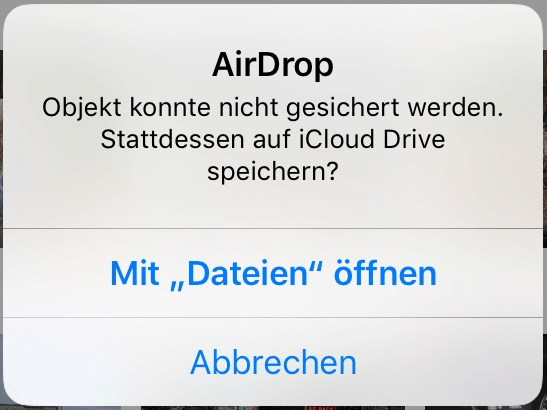 [Gelöst]: AirDrop Objekt konnte nicht gesichert werden