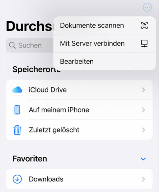 Gehen Sie auf Ihrem iPhone zur Dateien-App > Tippen Sie auf das Dreipunktsymbol > Wählen Sie „Mit Server verbinden“.