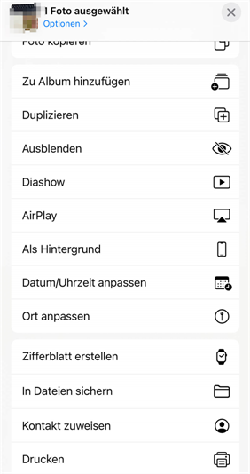 ★ Öffnen Sie auf dem Quell-iPhone die App Fotos > wählen Sie die gewünschten Bilder aus > tippen Sie auf die Schaltfläche Teilen in der unteren linken Ecke > wählen Sie In Dateien speichern > wählen Sie iCloud Drive als Ziel. Dann können Sie die App "Dateien" auf einem anderen iPhone aufrufen, um die Bilder zu überprüfen.