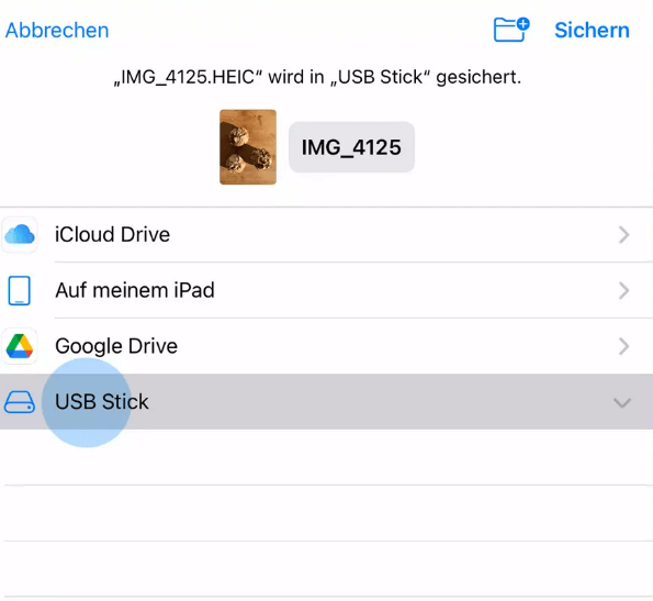 Wählen Sie den USB-Stick als Speicherort → gewünschten Ordner → Sichern.