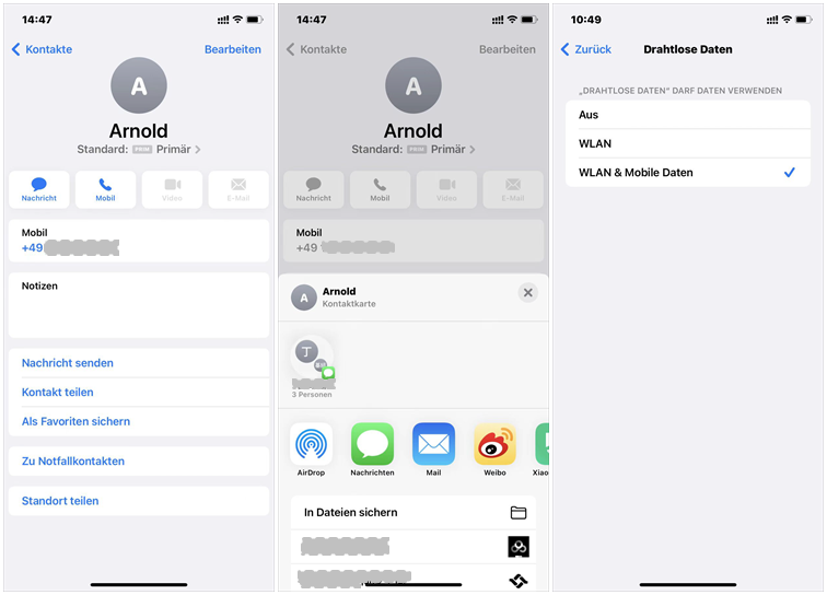 Per AirDrop Kontakte von iPhone zu iPhone übertragen ohne iCloud