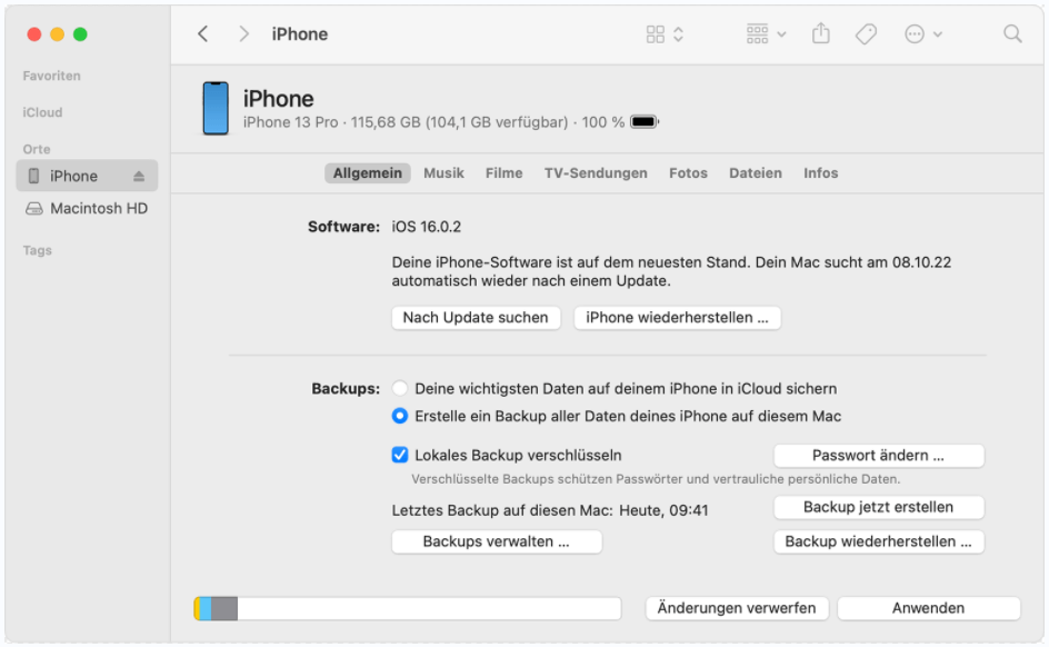 So übertragen Sie Daten mit dem Finder vom alten iPhone auf das neue iPhone