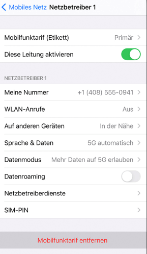 Hinweis: Das Löschen der eSIM auf dem iPhone bedeutet nicht, dass Ihr Tarif beim Anbieter gekündigt wird.
