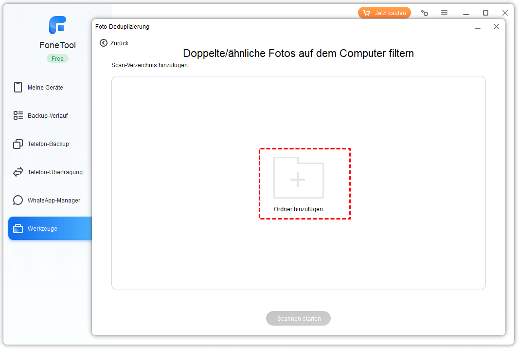 Schritt 3. Klicken Sie auf „Ordner hinzufügen“ und wählen Sie den Ordner aus, der die importierten Fotos enthält. Klicken Sie dann auf „Scannen starten“.