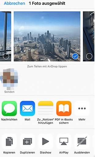 Auf dem iPhone wählen Sie "Fotos" > wählen Sie die Fotos aus, die Sie übertragen möchten > tippen Sie auf "Senden".