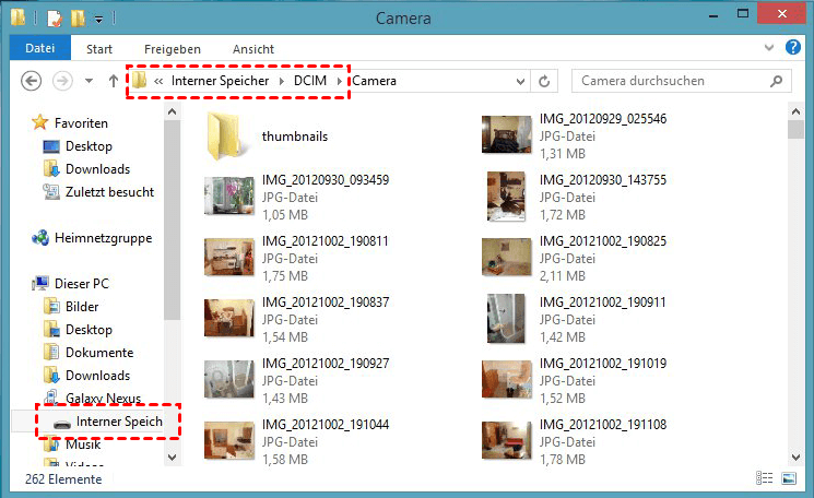Schritt 3. In DCIM können Sie die Fotos kopieren und einfügen oder einfach per Drag-and-Drop an einen Zielort auf Ihrem Laptop ziehen, um Ihr Bild zu speichern.