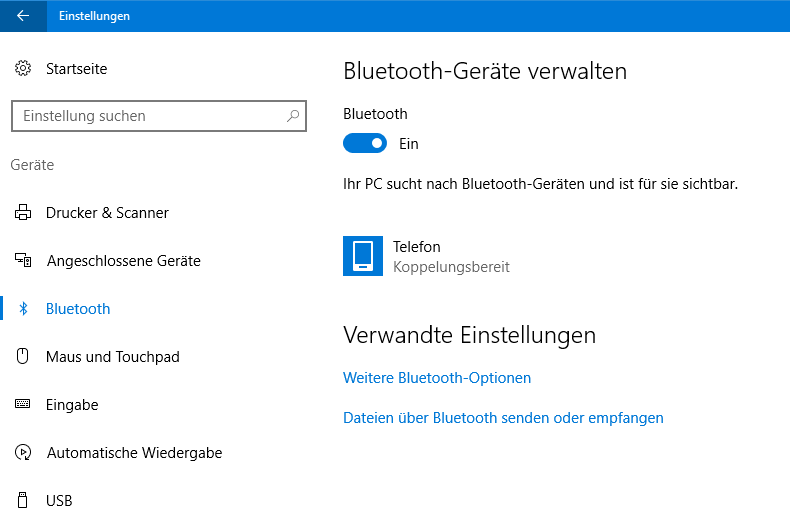 Wenn Ihr Computer Bluetooth unterstützt, können Sie Bluetooth direkt aktivieren und damit Fotos von iPhone auf PC ohne iTunes übertragen. Sie können den Schritten folgen, um Bluetooth sowohl auf Ihrem iPhone als auch auf Ihrem PC einzurichten und Fotos vom iPhone an den PC zu senden.