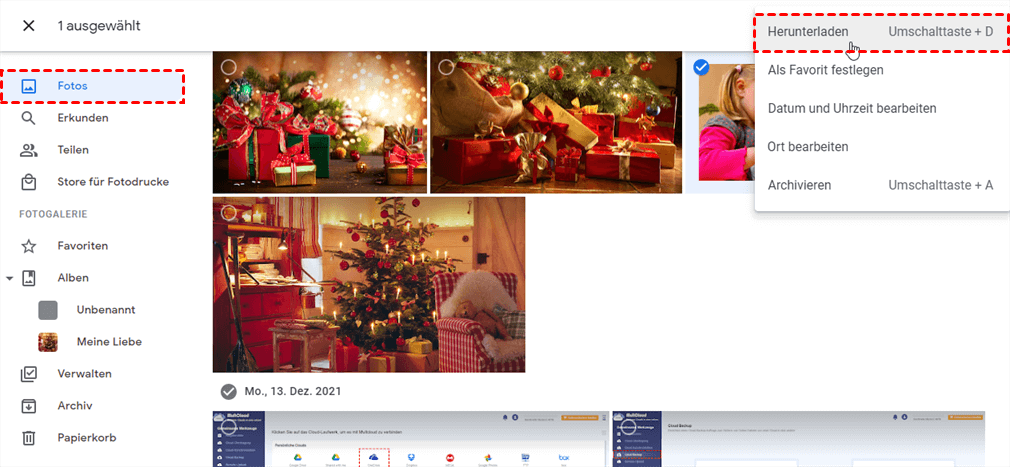 Schritt 4. Jetzt wählen Sie die benötigten Fotos aus und laden sie auf Ihr iPhone herunter.