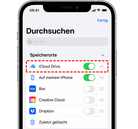 Wenn Sie nicht über genügend iCloud-Speicherplatz verfügen oder die Synchronisierung nicht aktivieren möchten, ist iCloud Drive möglicherweise die bessere Wahl, um Bilder vom Laptop auf iPhone ohne iTunes zu senden. Nachdem Sie Fotos auf das iPhone übertragen haben, können Sie diese Fotos aus iCloud Drive löschen, um Speicherplatz freizugeben. Darüber hinaus werden diese Fotos nicht von Ihrem iPhone gelöscht.