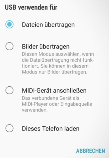 Schritt 1. Verbinden Sie Ihr Android-Telefon über USB mit dem Computer > Tippen Sie auf Dateien übertragen oder Fotos übertragen, damit der Computer die Dateien auf dem Android-Telefon lesen kann.