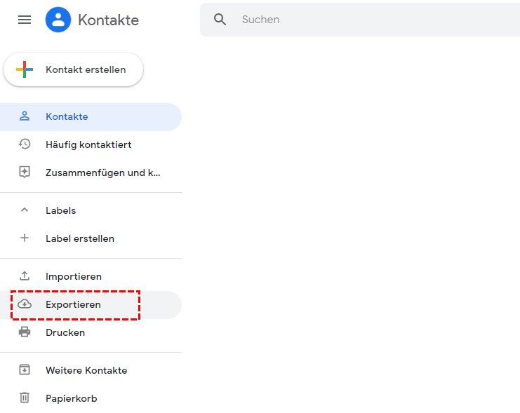 1. Öffnen Sie einen Webbrowser auf Ihrem Computer und gehen zu Google Kontakte, um sich mit Ihrem Gmail-Konto anzumelden > Klicken Sie in der linken Leiste auf Exportieren, um alle Kontakte zu exportieren.
