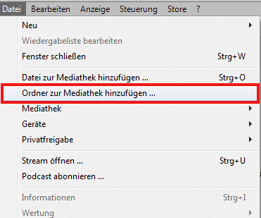 Schritt 2. Installieren und starten Sie iTunes für Windows. Klicken Sie im iTunes-Dateimenü auf „Ordner zur Mediathek hinzufügen“.