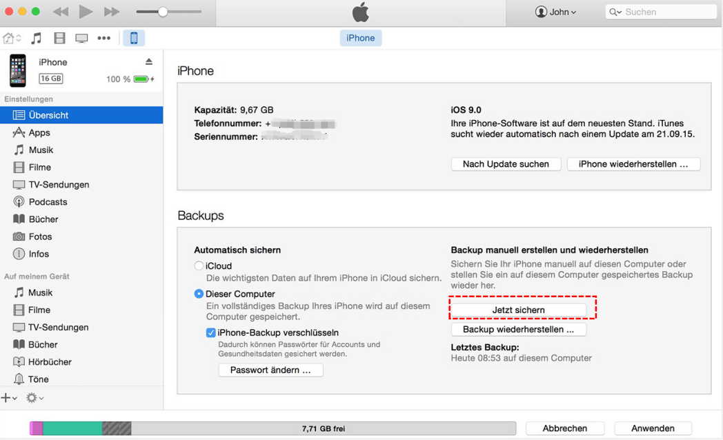 Schritt 3. Klicken Sie dann auf „Jetzt sichern“. Warten Sie, bis der Sicherungsvorgang abgeschlossen ist, und schalten Sie Ihr iPhone aus.