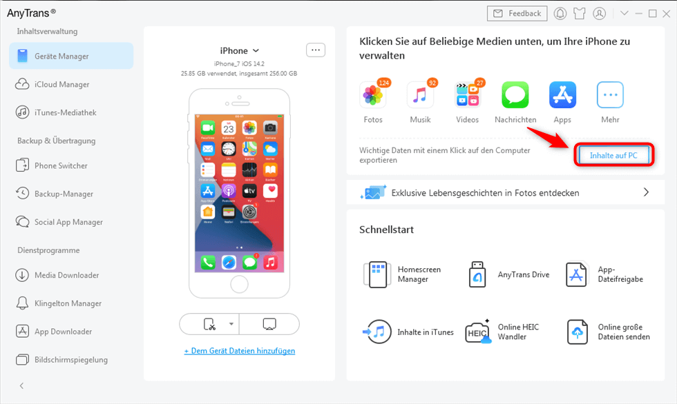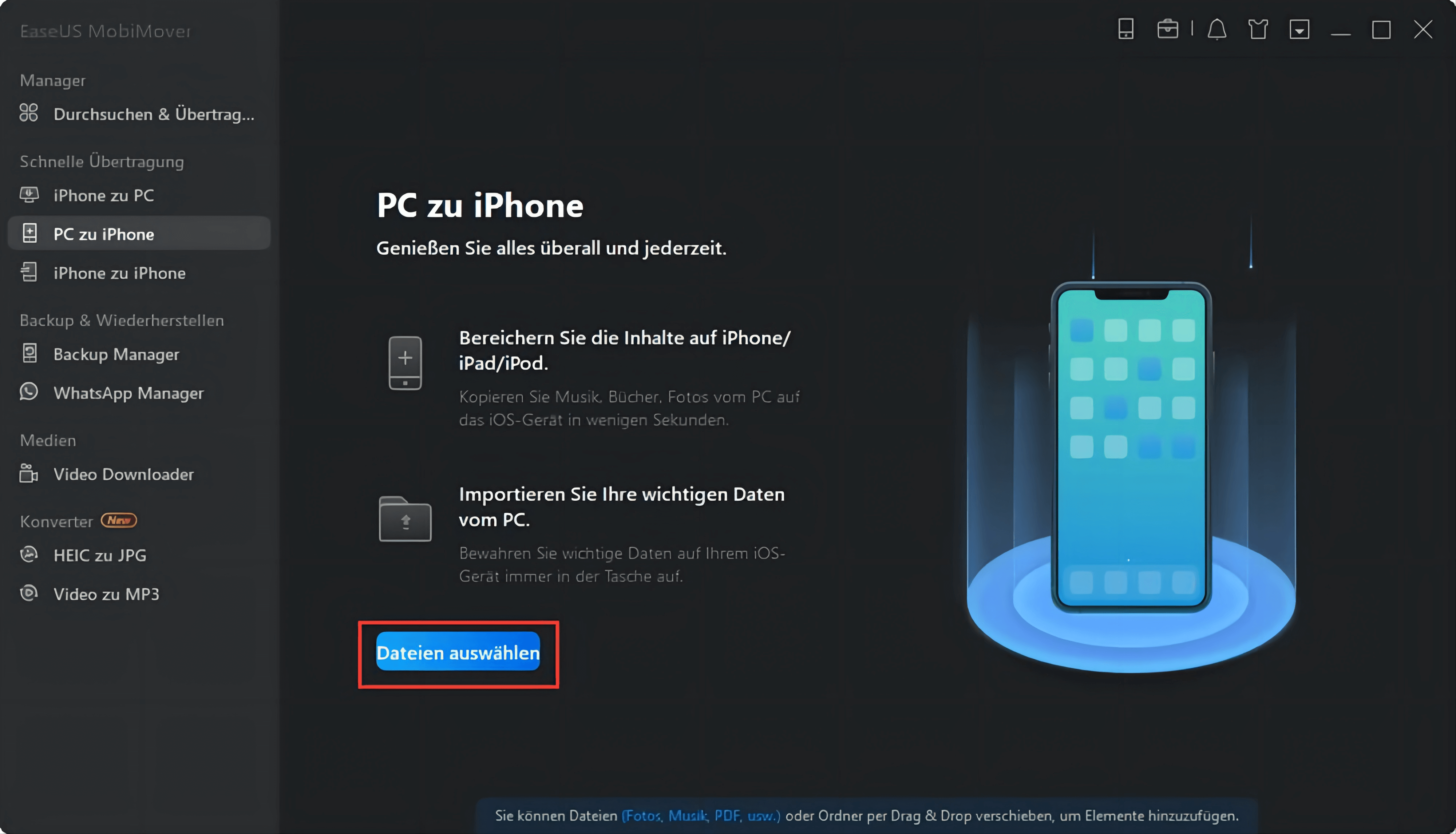 ● Sie können Dateien zwischen iPhone und PC/externer Festplatte/Flash-Laufwerk übertragen.