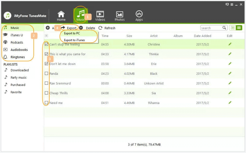 Wenn Sie Mediendateien einfach zwischen iPhone und PC übertragen möchten, dann ist iMyFone TunesMate die beste iPhone-Datenübertragungssoftware. Es kann Musik, Wiedergabelisten, Klingeltöne, Videos, Podcasts, iTunes U, TV-Sendungen, Hörbücher, Kamera-Rolle, Foto-Stream übertragen.