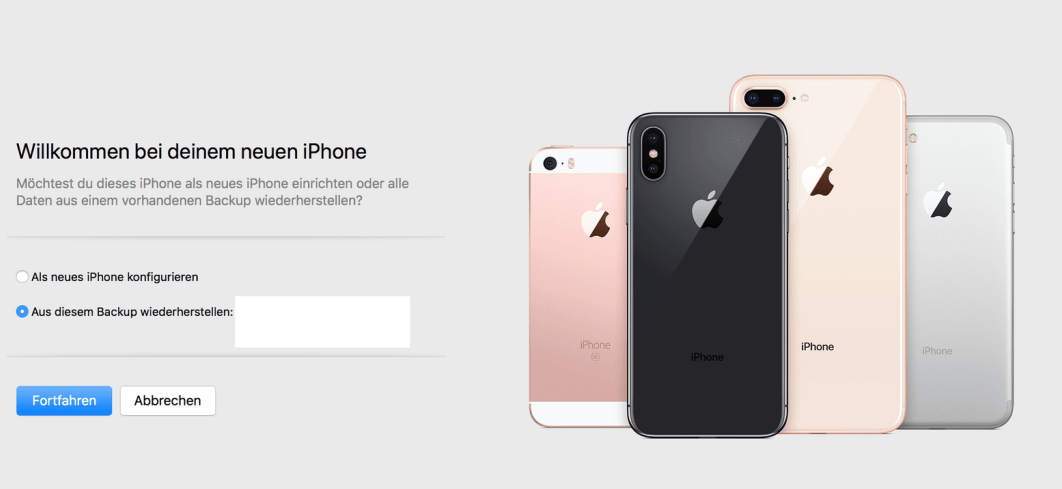 Schritt 4. Sie sehen dann den Bildschirm „Willkommen auf Ihrem neuen iPhone“. Standardmäßig sollte die Option „Aus diesem Backup wiederherstellen“ ausgewählt sein. Wenn nicht, wählen Sie diese Option.