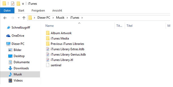 Schritt 1. Öffnen Sie den Datei-Explorer auf Ihrem Computer > Navigieren Sie zum Ordner C:\Benutzer\Music\iTunes.