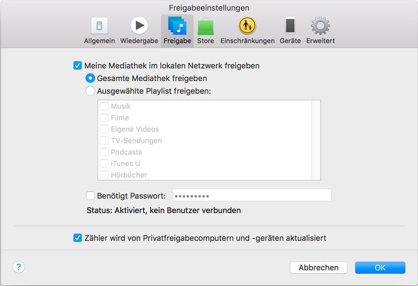 iTunes-Mediathek in einem gesperrten Netzwerk einstellen teilen