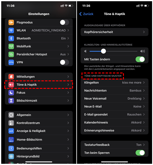 Wenn die Synchronisierung abgeschlossen ist, trennen Sie Ihr iPhone vom Computer. Gehen Sie zur App Einstellungen > Ton & Haptik > Klingelton, um den Klingelton zu suchen und einzustellen.