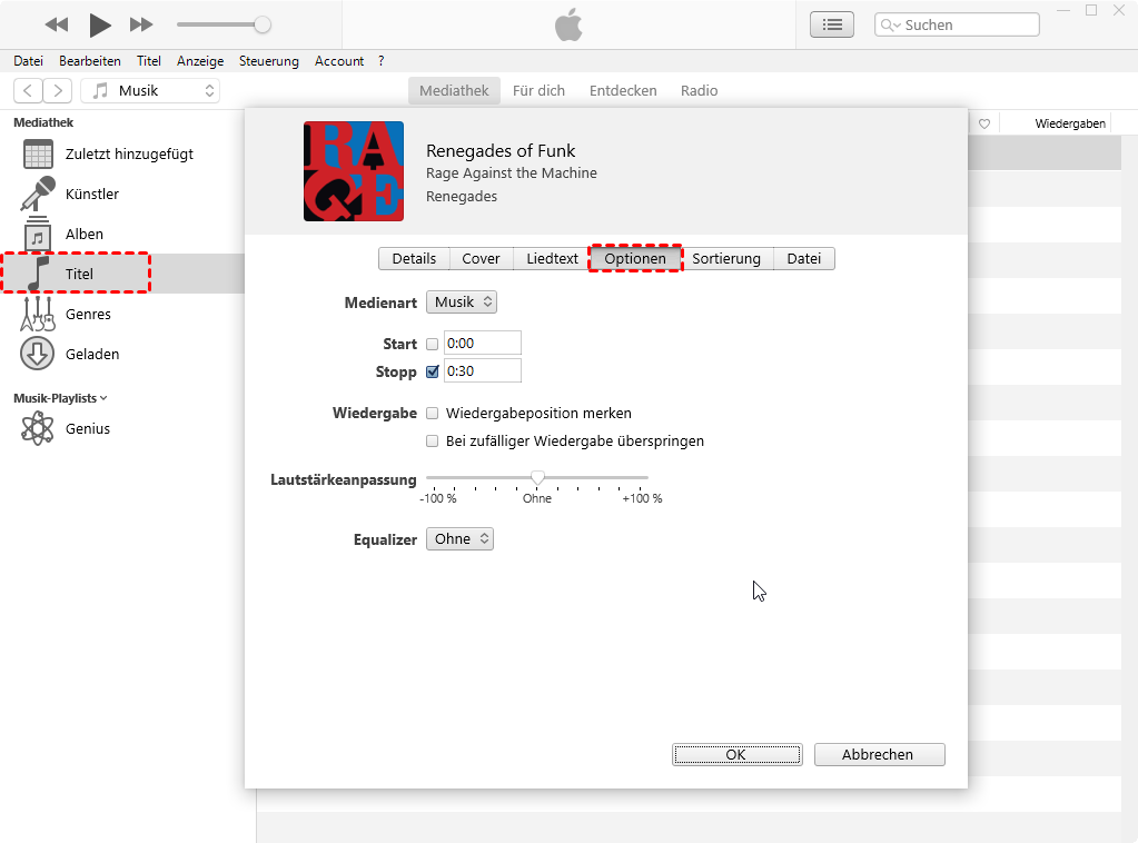 Weg 1. iTunes Musik als Klingelton auf dem iPhone einstellen