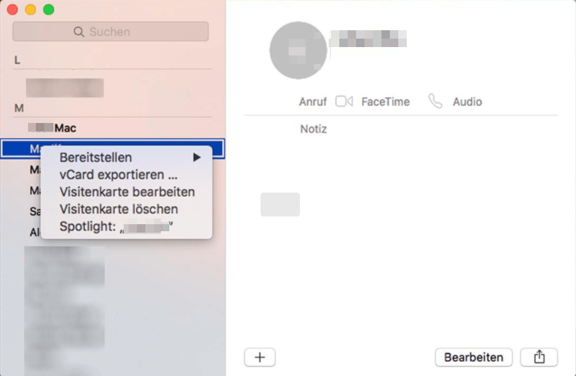 - Kontakte sind lokal auf dem Mac gespeichert.