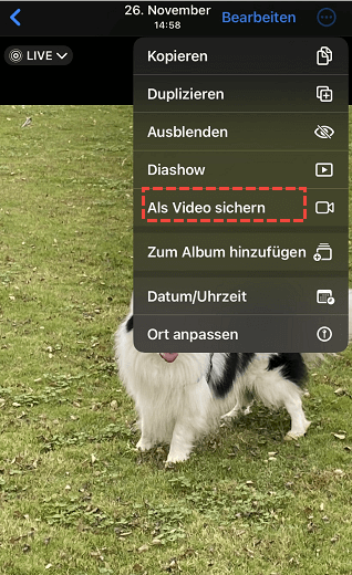 Neben dem direkten Teilen von Live-Fotos bietet iOS auch die Möglichkeit, Live-Fotos als Videos zu speichern. Dadurch kannst du ein oder mehrere Live-Bilder in ein Video umwandeln und es mit jedem auf deinem Telefon teilen. So sendest du jemandem ein Live-Foto als Video:
