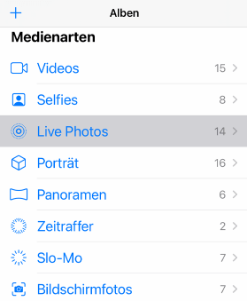 1. Öffne die Fotos-App auf deinem iPhone oder iPad, tippe auf Album und gehe zum Album Live-Fotos.