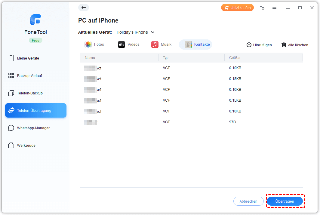 Teil 2. Über FoneTool Kontakte vom Computer auf das iPhone übertragen