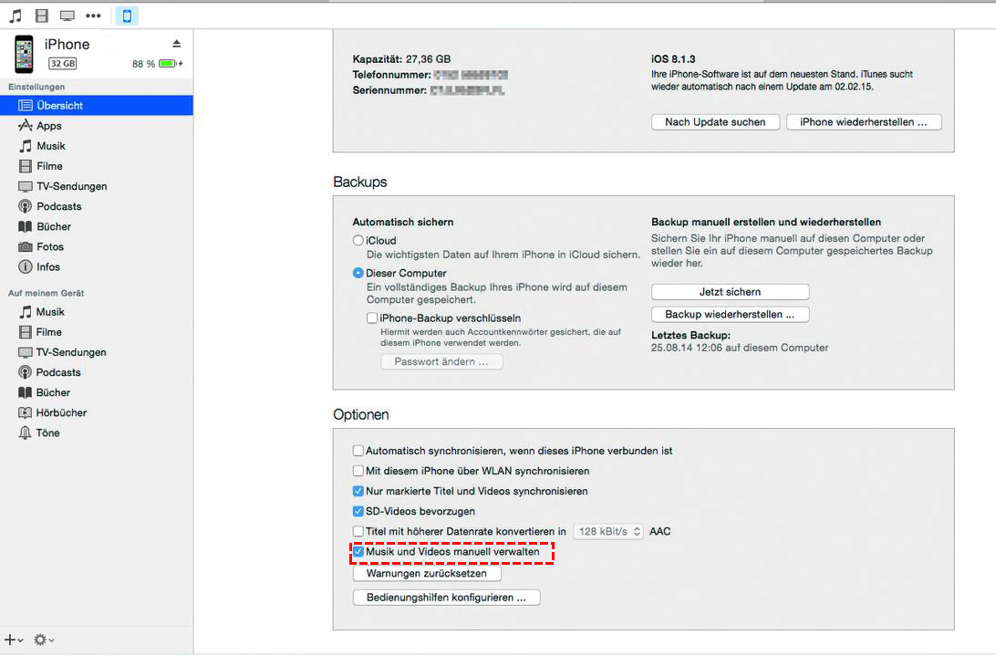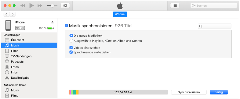 Weg 1. Musik vom Computer mit iTunes auf iPhone synchronisieren