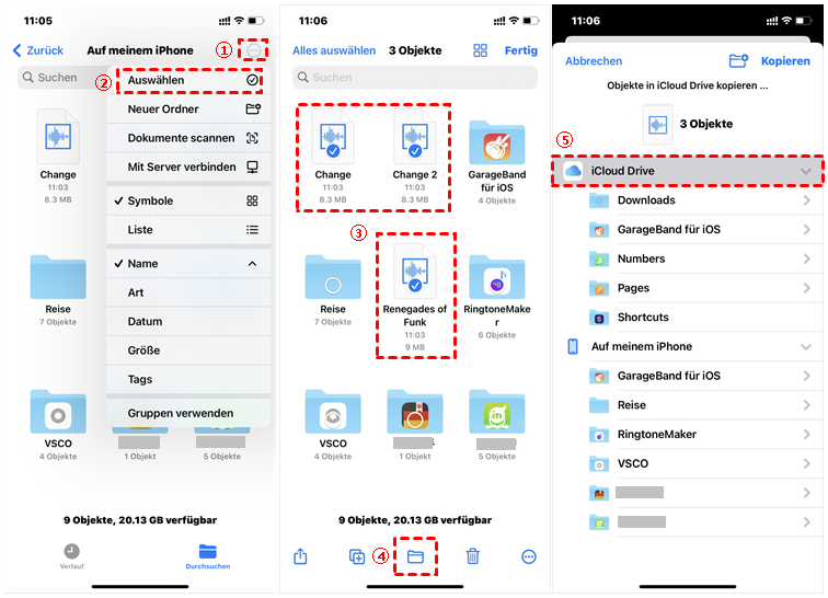 Schritt 2. Laden Sie Songs auf das iPhone herunter: Gehen Sie zur Dateien-App > Öffnen Sie iCloud Drive und Sie sehen Ihre Songs.