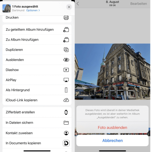 Gehen Sie also zur Foto-App und tippen auf „Alben“, scrollen Sie nach unten und tippen auf „Ausblenden“, um zu überprüfen, ob Sie jemals ein Foto ausgeblendet haben. Wenn ja, klicken Sie auf das Foto, das Sie wiederherstellen möchten, tippen Sie dann auf „Teilen“ und dann auf „Einblenden“. Jetzt werden diese Fotos in Ihrer Kamerarolle angezeigt.