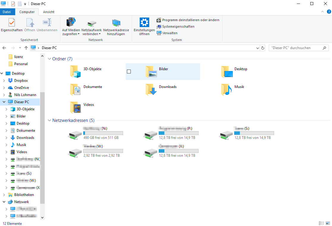 Öffnen Sie einen beliebigen Ordner, um den Datei-Explorer zu starten, klicken Sie auf „Dieser PC“. Daraufhin werden alle Festplatten angezeigt, wobei unter jedem Laufwerk der verfügbare Speicherplatz angezeigt wird. Wenn nicht genügend Speicherplatz vorhanden ist, können Sie Speicherplatz zum Speichern von Fotos freigeben.
