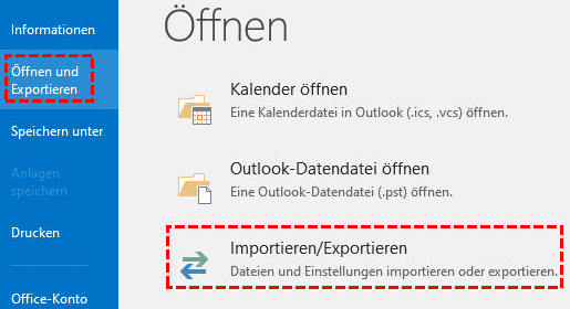1. Gehen Sie zu Outlook auf Ihrem Windows-PC > Wählen Sie Datei > Tippen Sie auf Öffnen und Exportieren > Importieren/Exportieren.