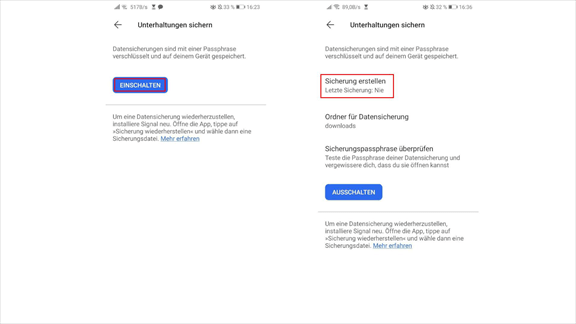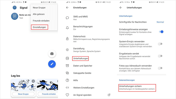 Weg 2. Signal-Nachrichten auf neues Handy durch Erstellen eines Backups austauschen
