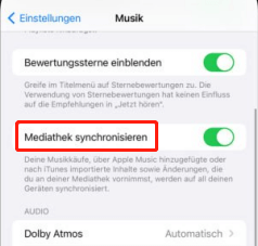 Gehen Sie auf Ihren iOS-Geräten zu „Einstellungen“ > „Musik“ > „Mediathek synchronisieren“.