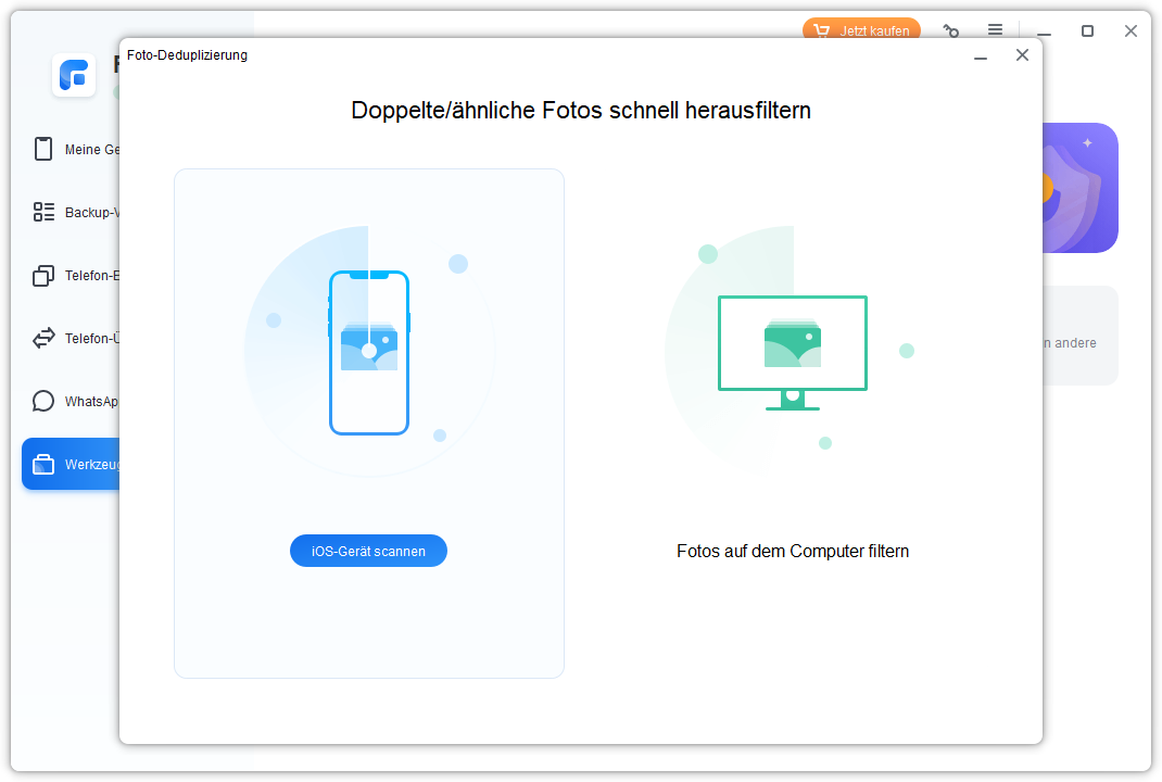 Wählen Sie, ob Sie Ihr iOS-Gerät oder Ihren Windows-Computer scannen möchten.
